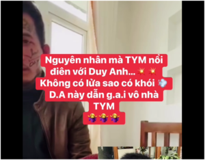 Theo những gì được chia sẻ trên các nền tảng, sự việc được cho là diễn ra trong bối cảnh mối quan hệ giữa Tym và Duy Anh đã rạn nứt từ trước. Tuy nhiên, việc Duy Anh xuất hiện cùng một cô gái khác tại không gian riêng tư từng thuộc về cả hai lại khiến nhiều người cảm thấy khó hiểu, thậm chí bức xúc. Một bộ phận cư dân mạng cho rằng hành động này thiếu tinh tế, đặc biệt khi những lùm xùm giữa hai bên vẫn chưa lắng xuống.