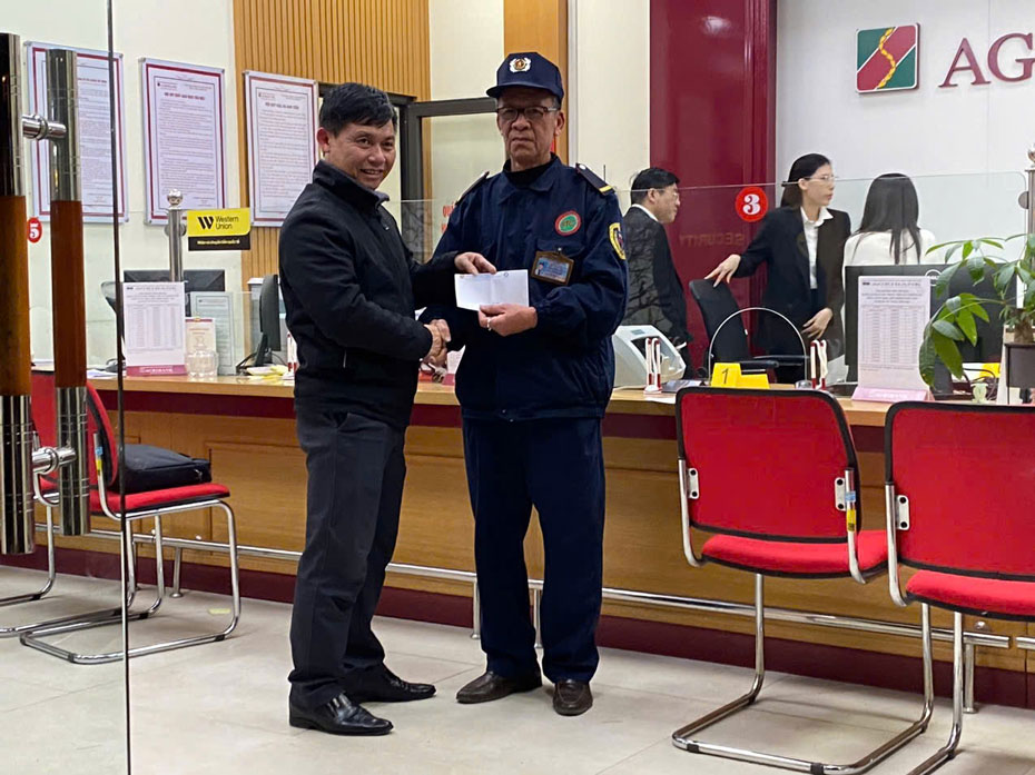 Công ty Dịch vụ Bảo vệ Phương Đông STC thưởng nóng cho bảo vệ Nguyễn Minh Nghĩa. Ảnh: Đỗ Huy