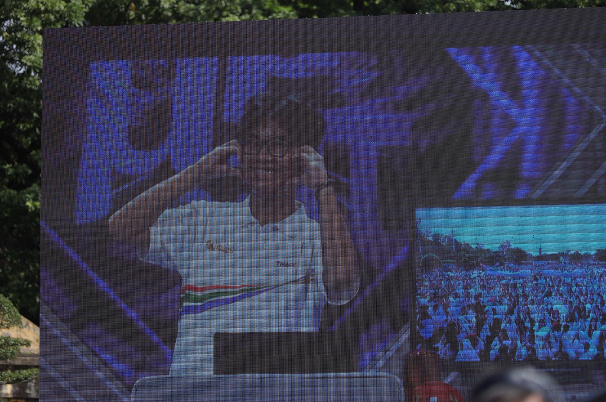 Hình ảnh dễ thương của Bảo Khánh trên màn hình tại điểm cầu Hoàng thành Thăng Long – Ảnh: DANH KHANG