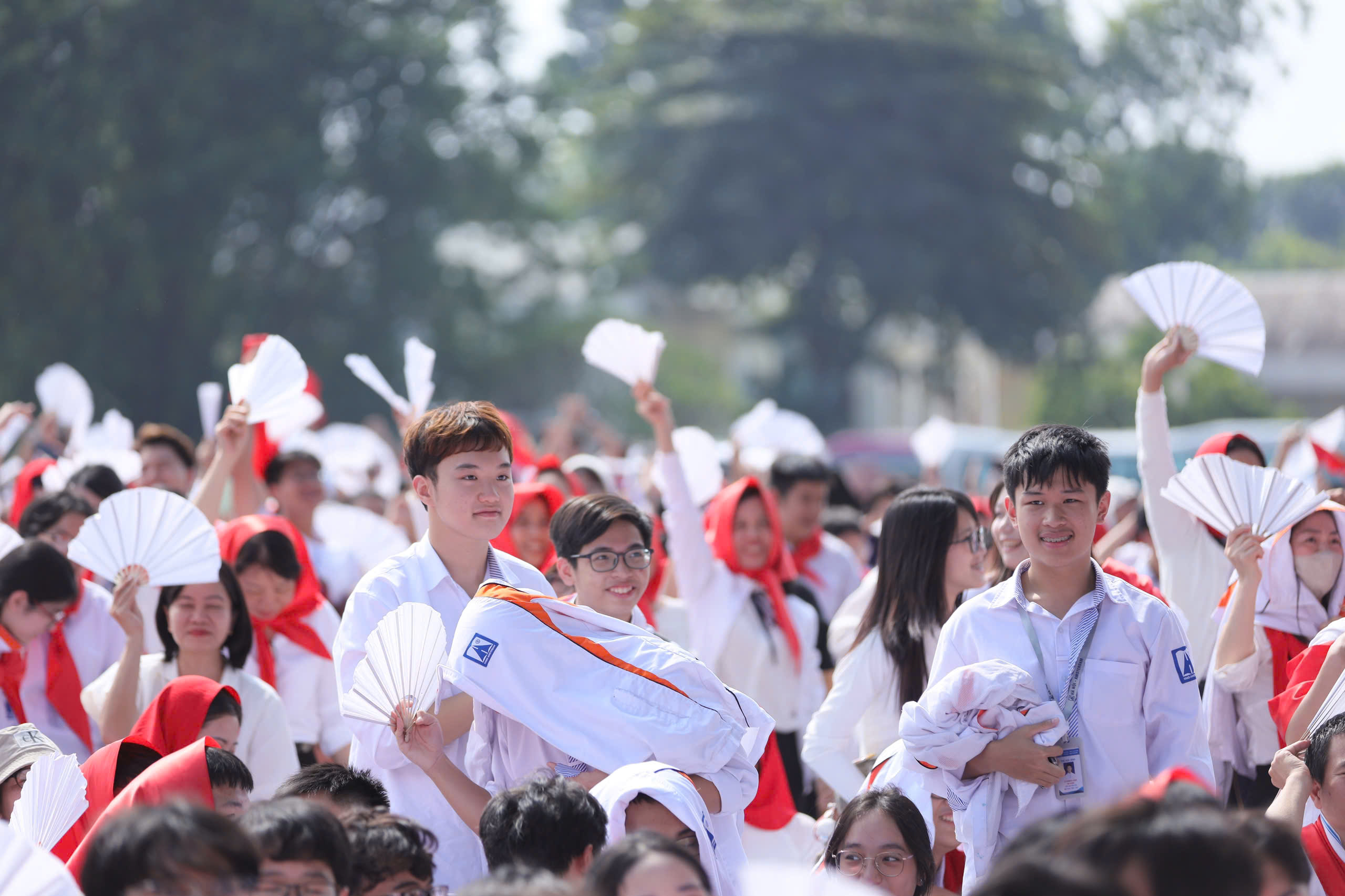 Khoảnh khắc học trò khoác cờ của khối chuyên sinh lên sân khấu nhận giải thưởng, theo cô Hà “thực sự rất tuyệt vời”.