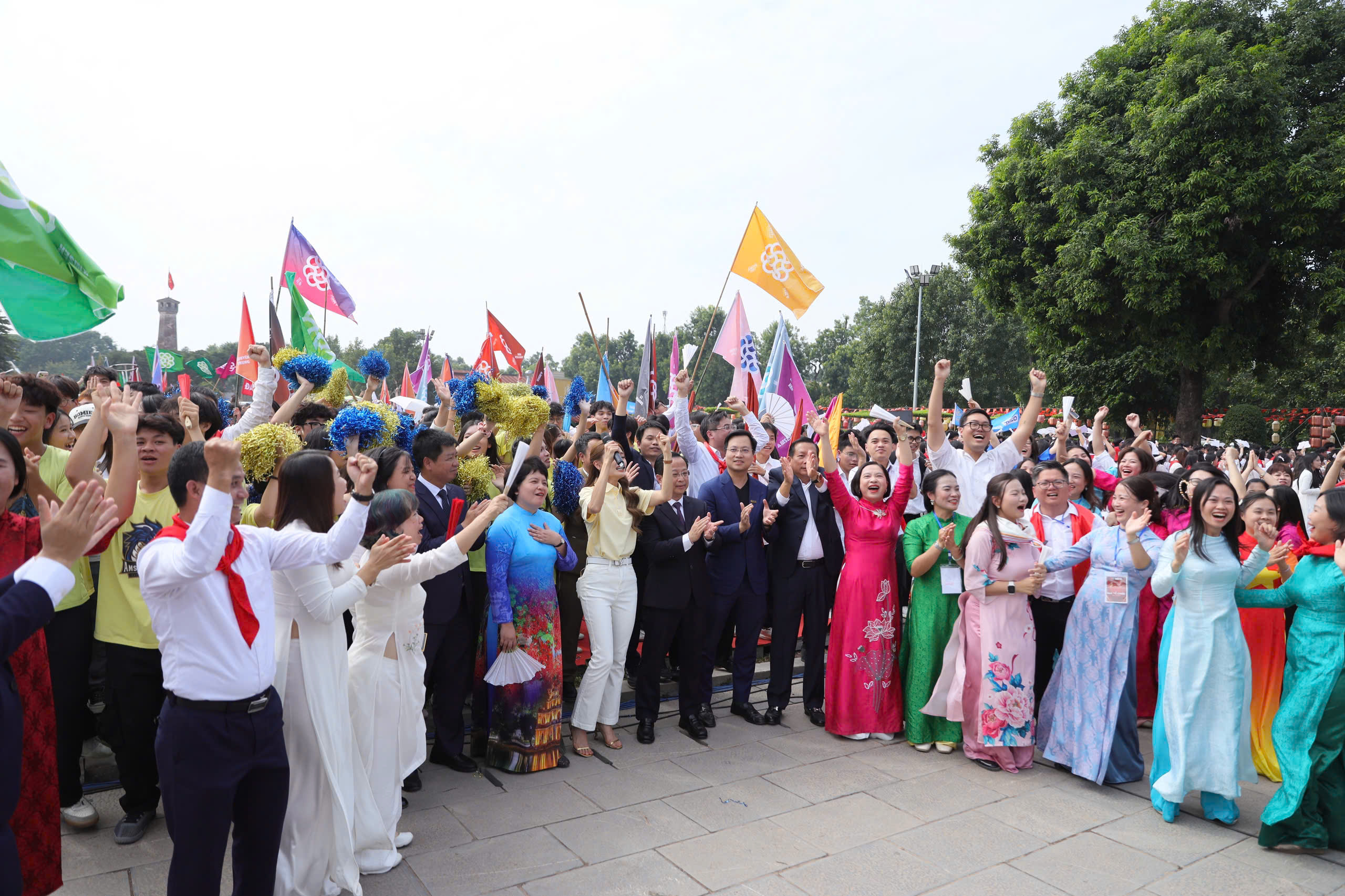 Cả điểm cầu Hà Nội như bùng nổ trong tiếng reo hò, khi tên Bảo Khánh được xướng lên là nhà vô địch Olympia 2025 – Ảnh: DANH KHANG