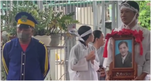Anh Tùng cầm di ảnh cha làm lễ di quan