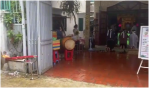 Khoảng 14h30′, khi mưa ngớt, người thân bắt đầu dọn dẹp rạp, bàn ghế, hoa viếng…