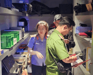 Sau một hồi khám xét, lực lượng chức năng phát hiện bên trong căn hộ có một chiếc két sắt, cao khoảng 65cm, rộng khoảng 45cm, nặng 105kg. Để mở được két sắt này, cần nhập mật khẩu hoặc dùng vân tay.