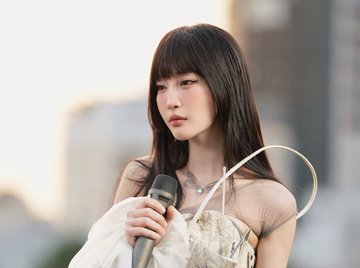 Ca sĩ cho biết bộ ảnh được chụp tại khu vực Giếng Tiên thuộc vùng biển Eo Gió, xã Nhơn Lý (cũ), phường Quy Nhơn Đông, tỉnh Gia Lai. Cô gửi lời xin lỗi đến người dân địa phương.