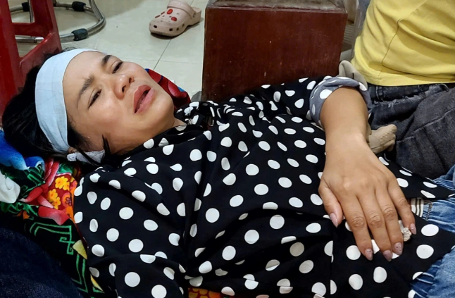 Chị Thu, mẹ C. nằm lặng trên giường, gần như kiệt sức sau biến cố quá lớn. Gương mặt hốc hác, ánh mắt vô định, chị không còn đủ sức để khóc thành tiếng trước nỗi đau mất đi người con gái đầu lòng.