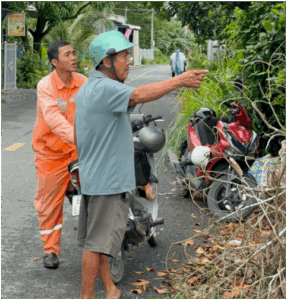 Theo ghi nhận, chú Minh và cô Giao đứng quan sát khá lâu, vừa theo dõi thợ làm vừa trò chuyện, nhắc nhở: