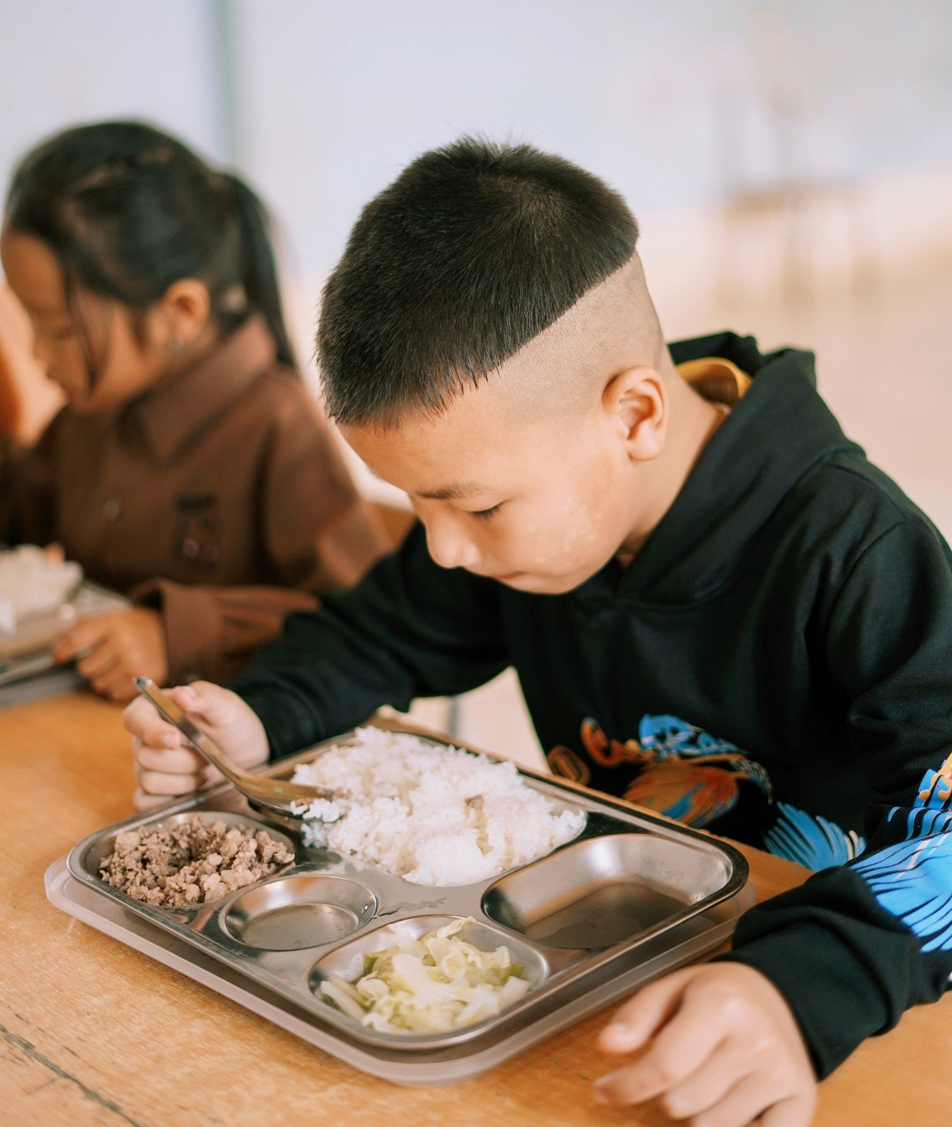 Nuôi em mang đến các bữa ăn ngon cho học sinh vùng sâu vùng xa – Ảnh: Fanpage Nuôi em