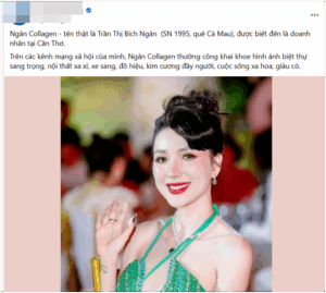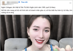 Tối ngày 16/10, nhiều trang mạng xã hội đồng loạt réo tên Ngân Collagen với những nội dung như : ‘Ngân Collagen – tên thật là Trần Thị Bích Ngân (SN 1995, quê Cà Mau), được biết đến là doanh nhân tại Cần Thơ. Trên các kênh mạng xã hội của mình, Ngân Collagen thường công khai khoe hình ảnh biệt thự sang trọng, nội thất xa xỉ, xe sang, đồ hiệu, kim cương đầy người, cuộc sống xa hoa, giàu có’, ‘Ngân Collagen, tên thật là Trần Thị Bích Ngân (sinh năm 1995, quê Cà Mau). Nổi lên trên mạng xã hội với hình ảnh nữ doanh nhân giàu có, sở hữu biệt thự trăm tỷ, túi hiệu, kim cương và xe sang’…