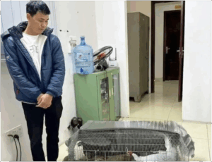 Anh Thái Khắc Thành bị bắt giữ vì nuôi bán 13 con gà lôi trắng trái phép. Ảnh: Công an cung cấp